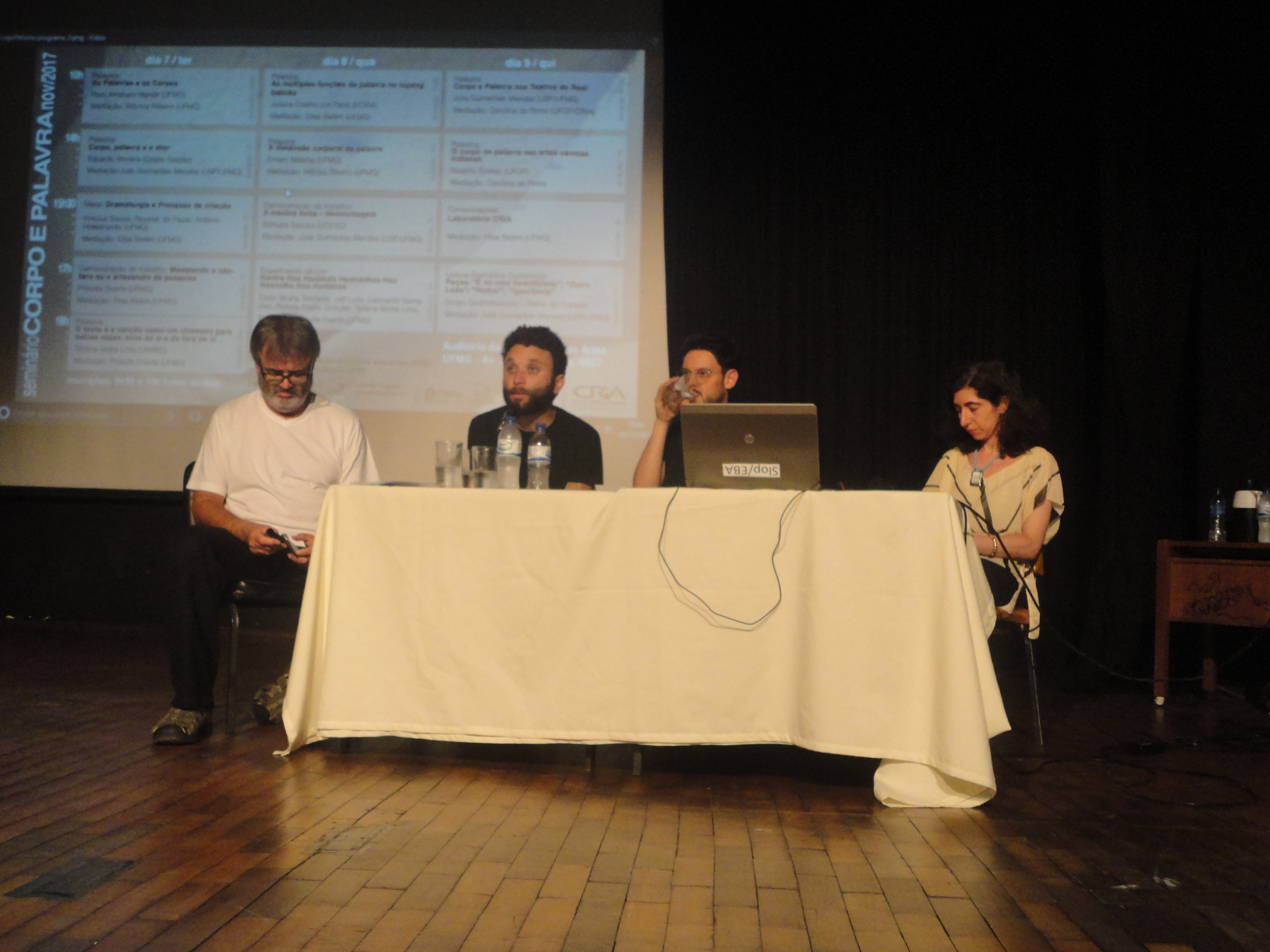 O Seminário Corpo e Palavra aborda as relações entre a cena e o texto. Tendo como tema central a materialidade da palavra e suas práticas corpóreas, a programação seguirá três eixos conceituais: a palavra na dramaturgia; a palavra-corpo; a palavra e o texto na formação do ator. Integrando a prática artística e o conhecimento acadêmico, propomos o diálogo entre a pesquisa de artistas e de professores da cena brasileira.